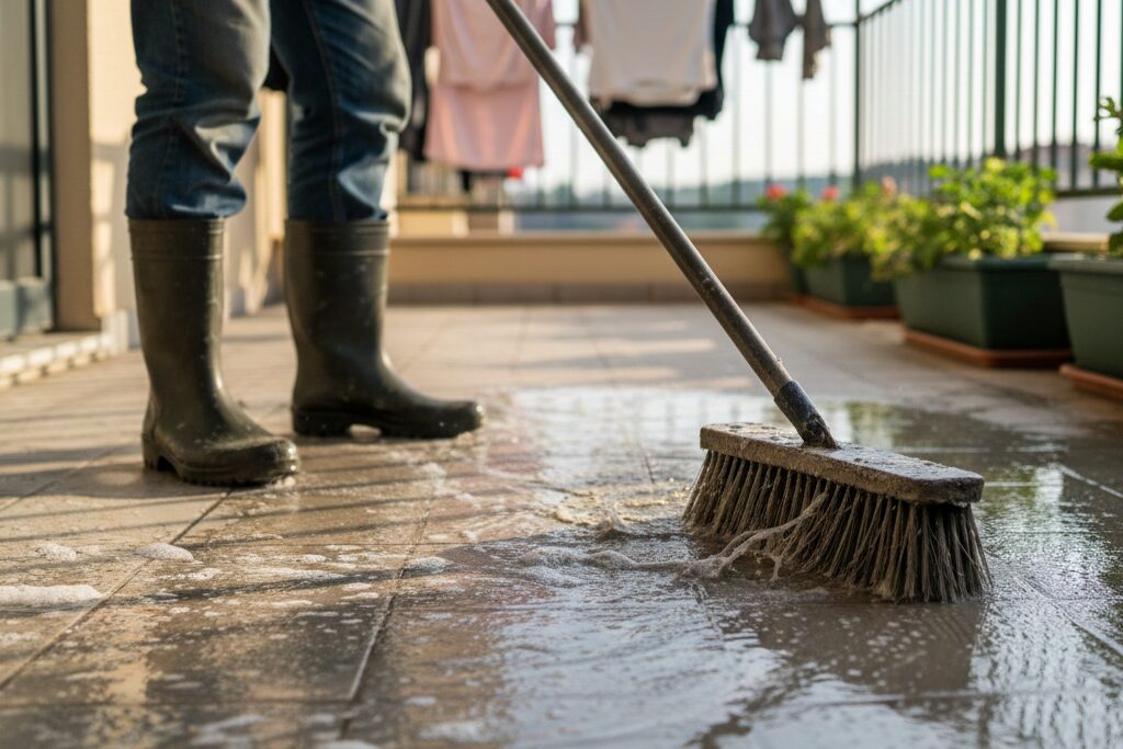 ベランダ掃除は大変