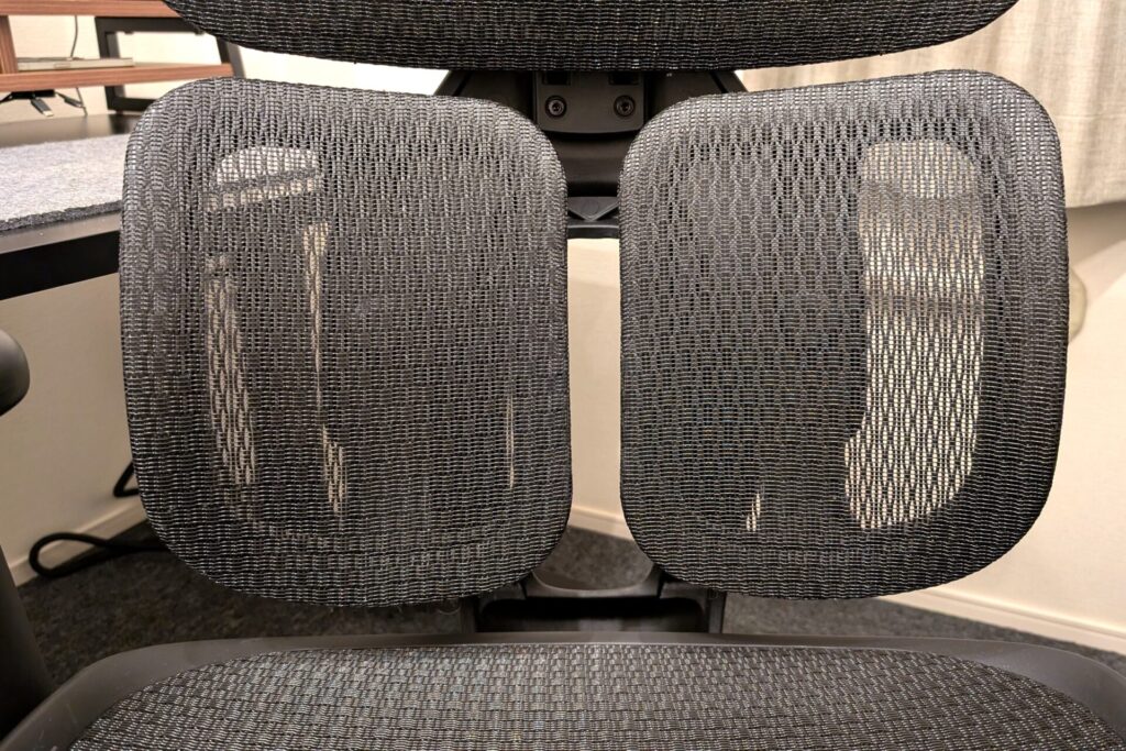 背面はランバーサポートの位置は変わらないが、その上の部分については高さを調整することができ、もたれかかったときの頭があたる位置を調整できる。