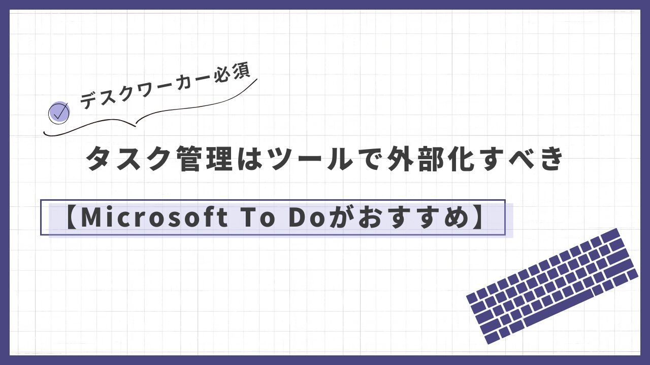 「あれもこれもやらなきゃいけなかった気がする」と頭の中に残った状態で作業すると思った以上に効率が落ちるし、気が散る。タスクの管理はMicrosoft To Doで外部化できていると思えばそんな心配もなくなる。
