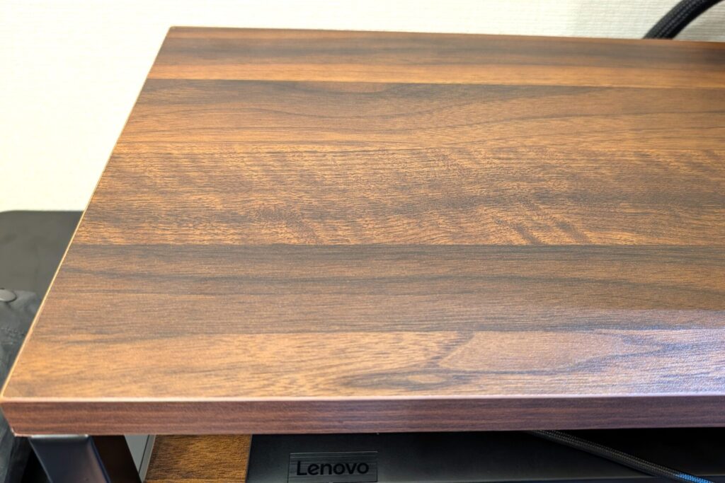 6,990円で買っている以上仕方ないが、素材の質感はそれなりである。板はMDF板で、立派な1枚板などではないので期待してはいけない。ただ、普段ジロジロ至近距離で見るわけでもないし、酷い安物感があるわけでもないので十分満足できると思う。