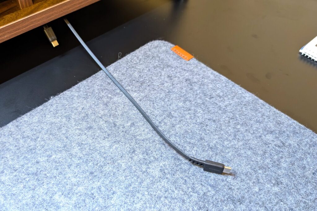 オウルテックの片巻きUSB-Cケーブルを使うと、使いたい時はコードを引っ張り出して、使い終わったら戻すということができるようになるのでおすすめだ。