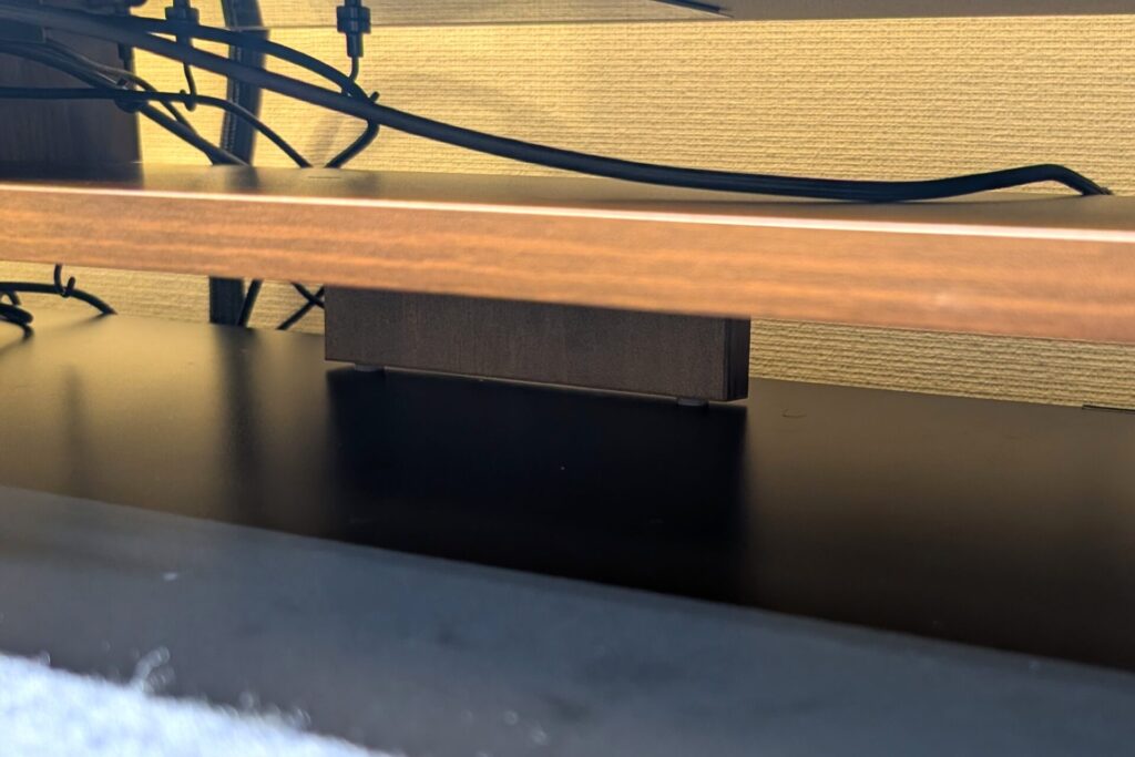 作りの部分で触れたが、デスクシェルフ中央の見えない部分に支えが入っている。致命的になるほどではないし、運用次第でそこまで気になることもないが、正直これはない方がいい。これも耐荷重とトレードオフなんだと思う。