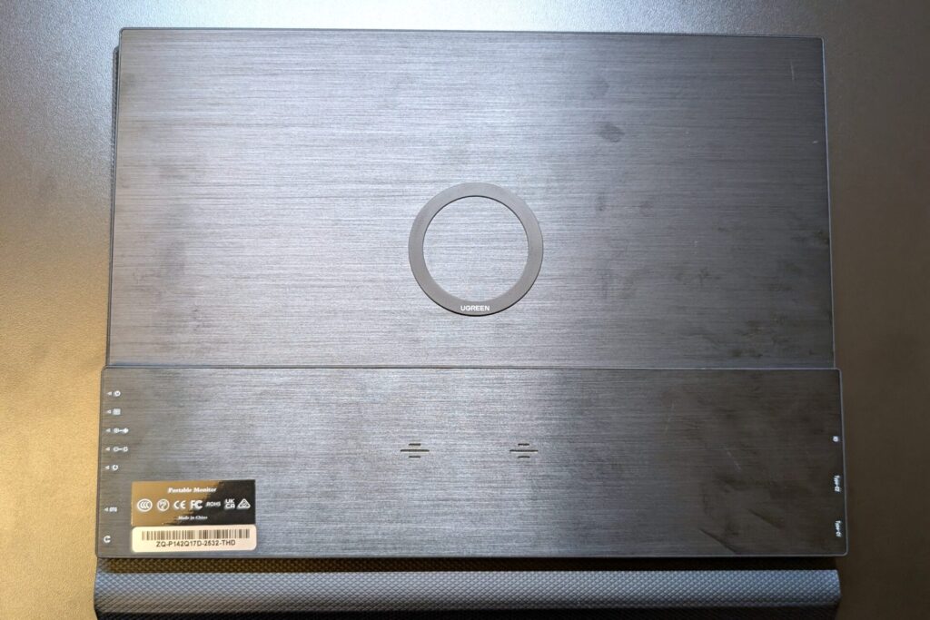 14インチのサブモニターでアクセスする予定のない端子は隠してしまい、必要になる3.5mmイヤホンジャックが見えるように設置している。