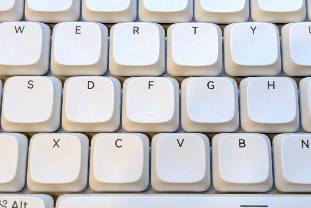 まず最初に触れておきたいのが、白基調のかわいくてミニマルなデザインだ。別に仕事の効率化には何の影響もないんだが、見ているだけでテンションが上がるデザインだ。いくつかロープロファイルキーボードの選択肢がある中で、ダントツでデザインが気に入ったキーボードだった。使っているとテンションが上がるから、効率化まではいかずともモチベは上がるかもしれない。俺が購入したのがオフホワイトで、他にもマーブルとフラミンゴというカラバリがある。